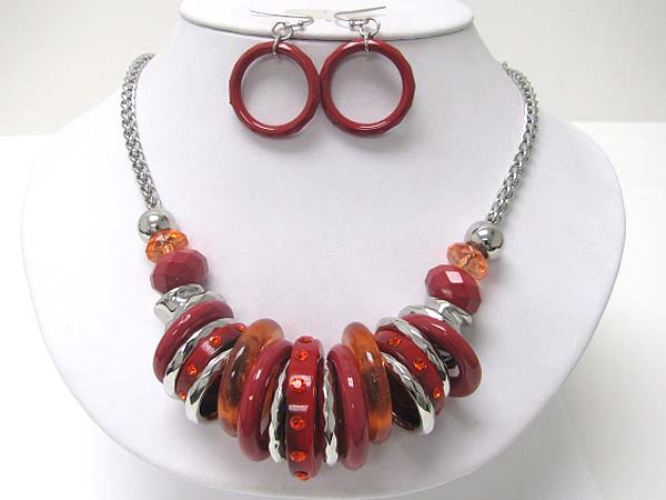 WHOLESALE CRYSTAL STUD CHUNKY ACRYL AND METAL RING NECKLACE EARRING SET 355632