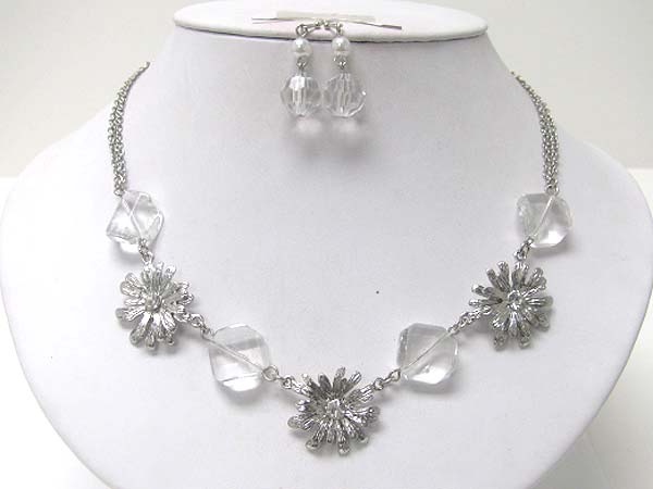 WHOLESALE CRYSTAL STUD METAL FLOWERS AND BEADS LINK NECKALCE EARRING SET 355635