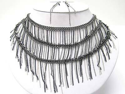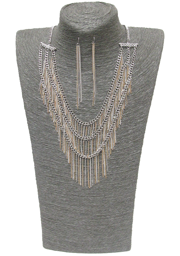 WHOLESALE TRIPLE LAYER METAL TASSEL HANGING DROP NECKLACE EARRING SET 355639