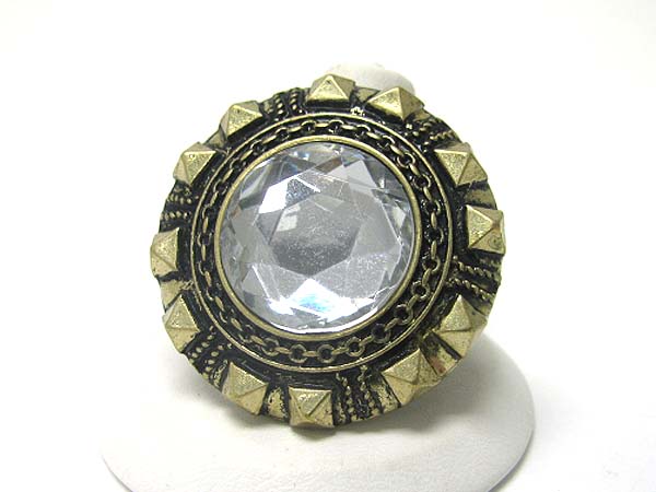 WHOLESALE SOLE FACET STONE ANTIQUE BURNISH METAL STRETCH RING 355647