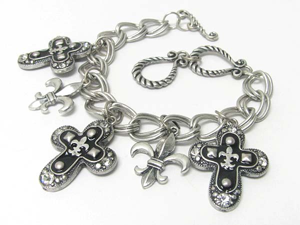 WHOLESALE MEDIEVAL DESIGN METAL ROUND EDGE CROSS CHARM DANGLE CHAIN BRACELET 355759
