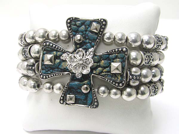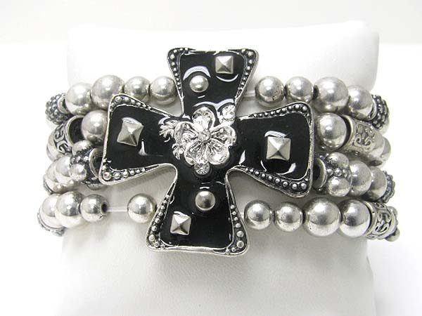 Medieval design metal cross top metal ball stretch bracelet