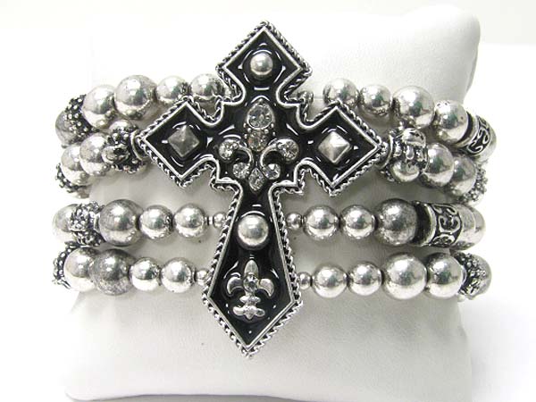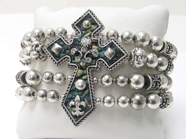 Medieval design metal cross top metal ball stretch bracelet