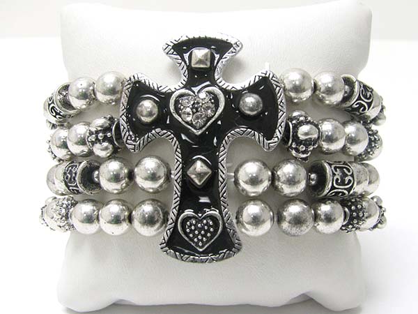 Medieval design metal cross top metal ball stretch bracelet