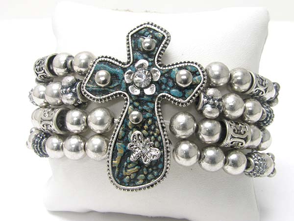 WHOLESALE MEDIEVAL DESIGN METAL ROUND EDGE CROSS TOP METAL BALL STRETCH BRACELET 355794