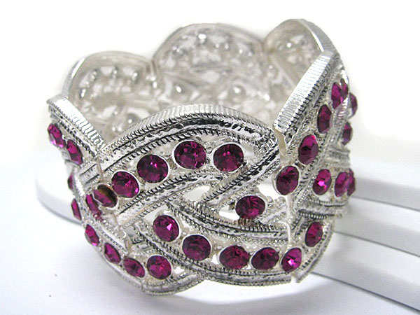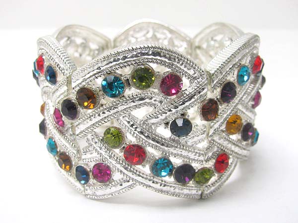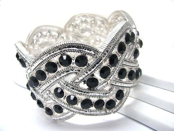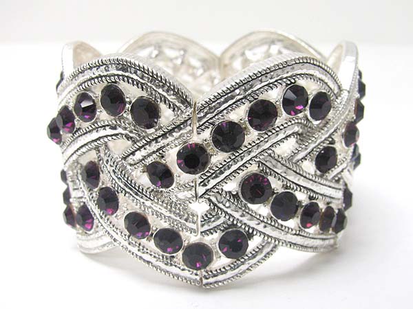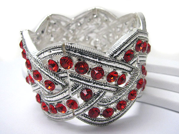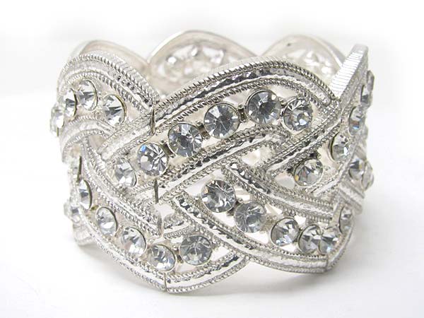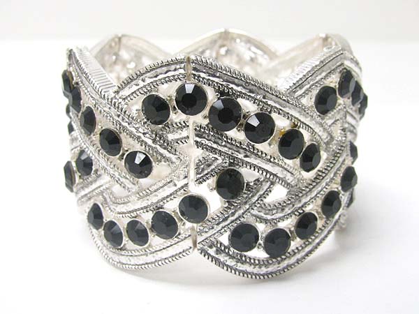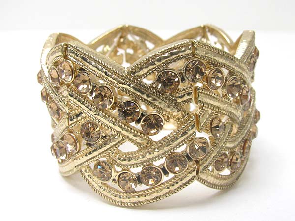 WHOLESALE CRYSTAL STUD WIDE METAL STRETCH BRACELET 355861