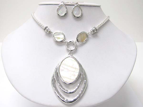 Natural mother of pearl disk link necklace earring set