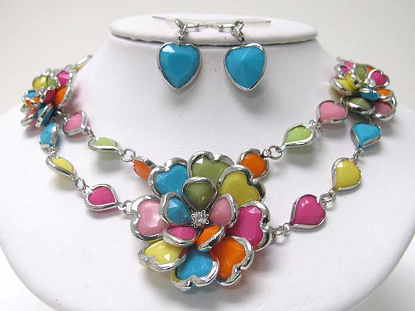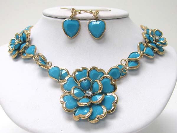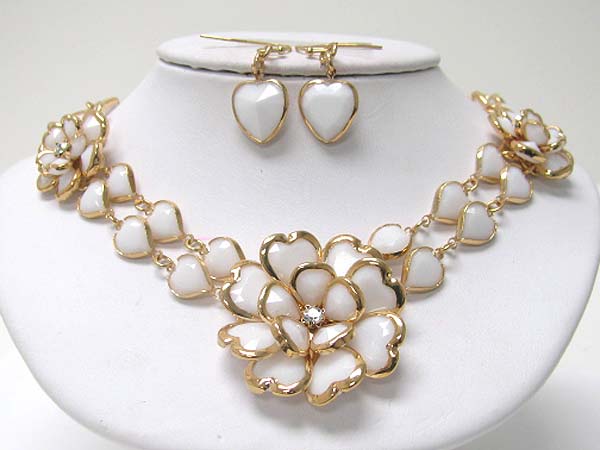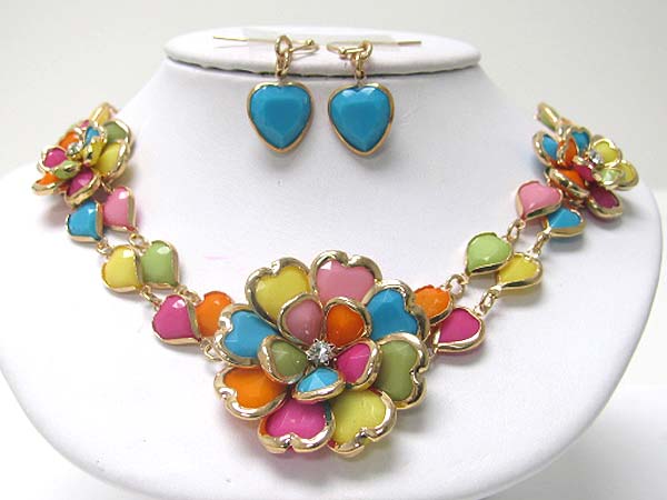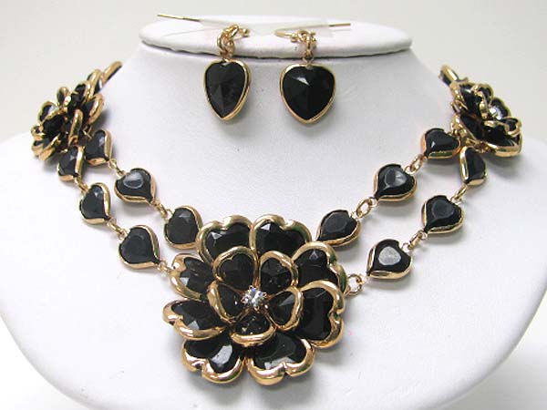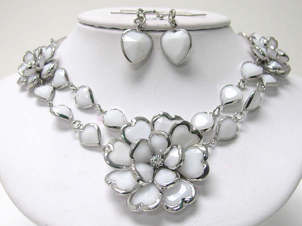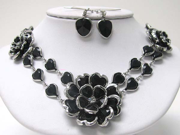 WHOLESALE ACRYL AND CRYSTAL ART DECO FLOWER LINK NECKLACE EARRING SET 356130