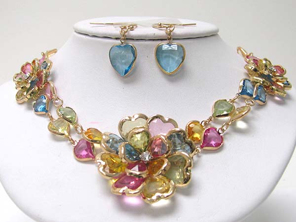 Acryl and crystal art deco flower link necklace earring set