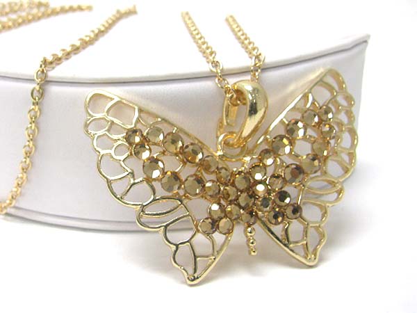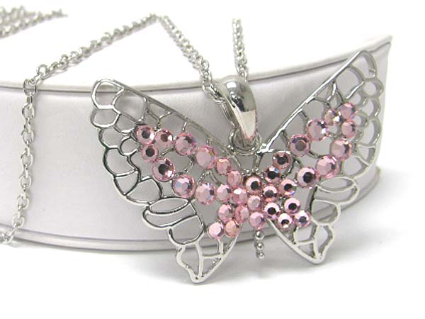 WHOLESALE CRYSTAL STUD LARGE BUTTERFLY PENDANT LONG CHAIN NECKLACE 356190