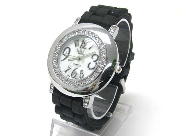 WHOLESALE CRYSTAL STUD ROUND FACE RUBBER BAND FASHION WATCH 356212