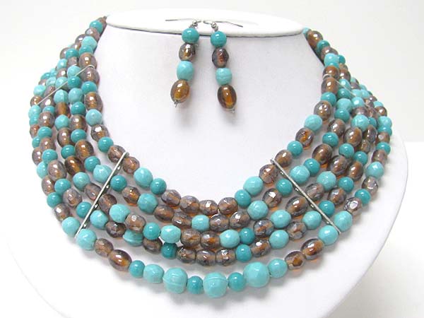 WHOLESALE 5 ROW MIXED BEADS DRAPE NECKLACE EARRING SET 356265