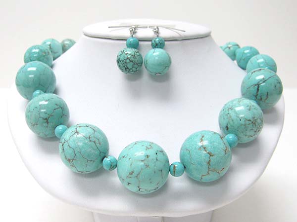 WHOLESALE TURQUOISE BALL LINK NECKLACE EARRING SET 356270