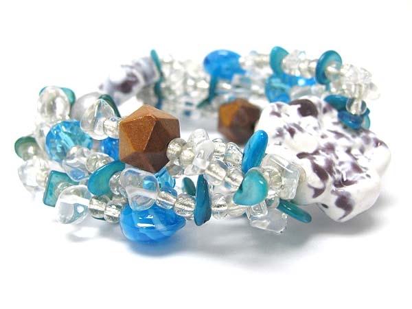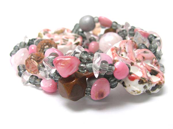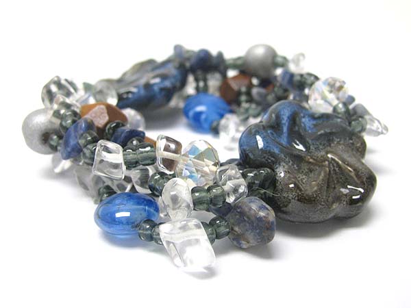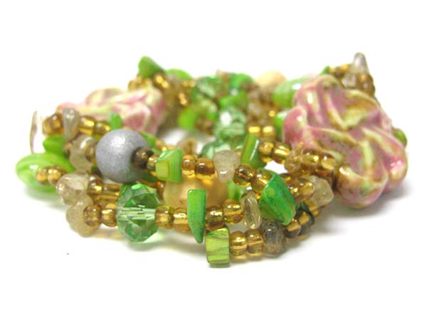 Ceramic flower and multi row mixed beads stretch bracelet