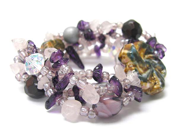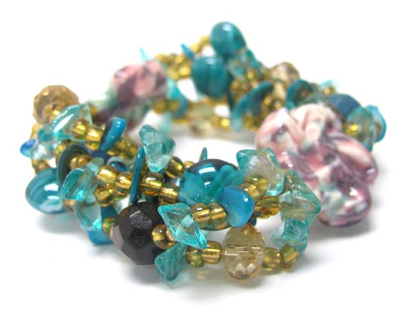 WHOLESALE CERAMIC FLOWER AND MULTI ROW MIXED BEADS STRETCH BRACELET 356423