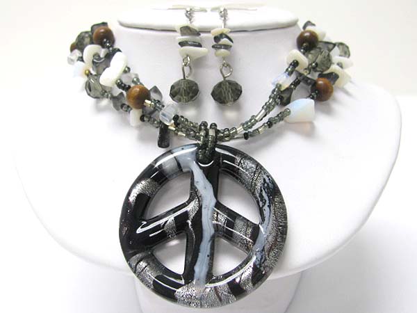 WHOLESALE MURANO GLASS PEACE MARK PENDANT AND MIXED NATURAL CHIP STONE NECKLACE EARRING SET 356440