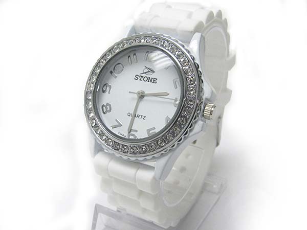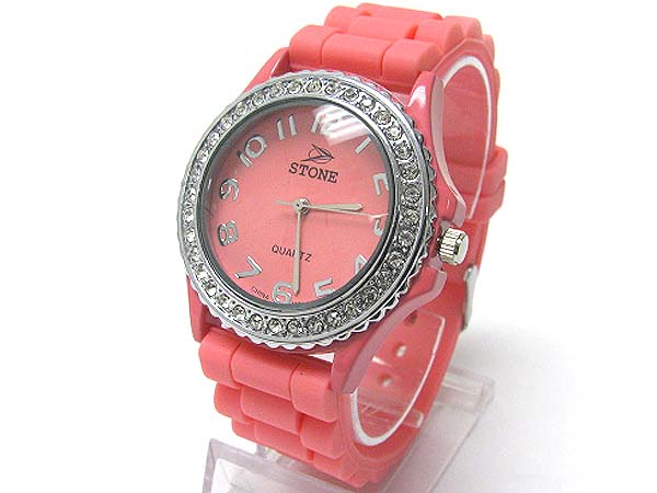 WHOLESALE CRYSTAL ROUND COLOR RUBBER BAND FASHION WATCH 356600