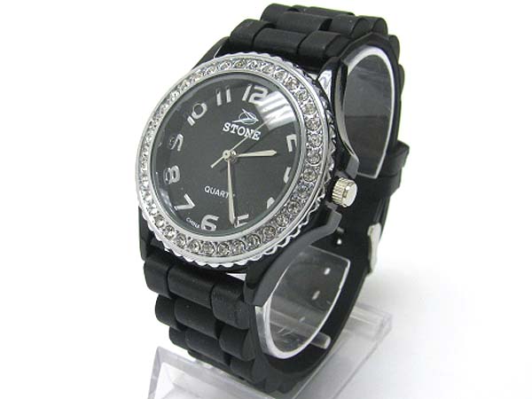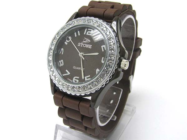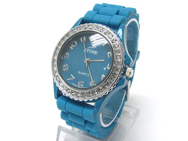 Crystal round color rubber band fashion watch