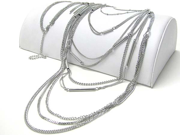 WHOLESALE MULTI METAL TUBE AND CHAIN LONG NECKLACE EARRING SET 356701