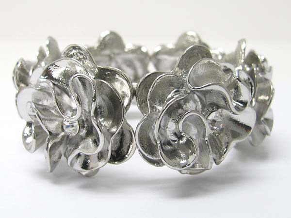 WHOLESALE CRYSTAL STUD METAL ART DESIGN FLOWER LINK STRETCH BRACELET 356856