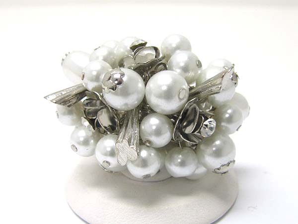 Mixed pearl beads chunky cluster stretch ring