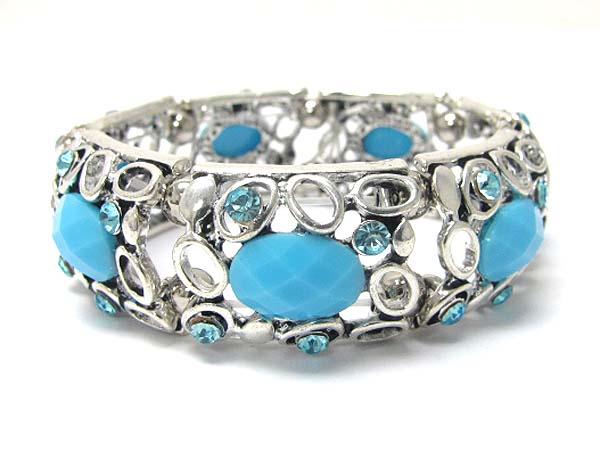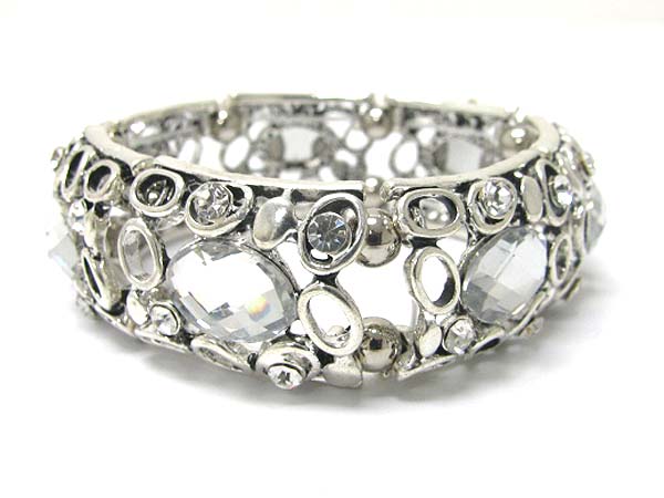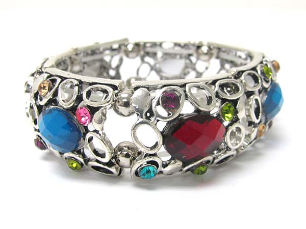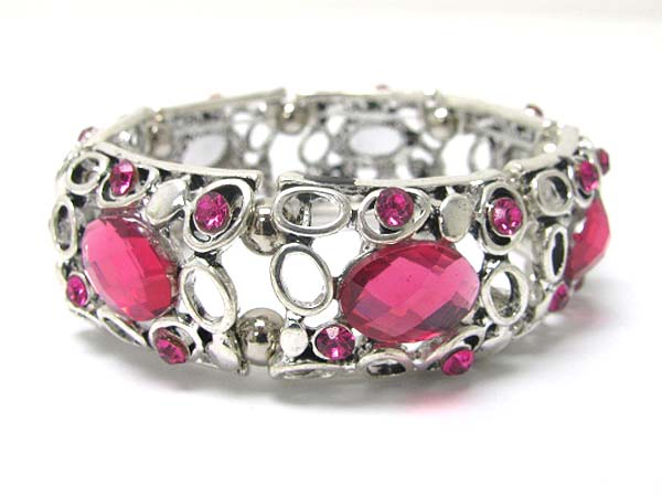 WHOLESALE CRYSTAL AND GLASS STONE DECO METAL STRETCH BRACELET 356897
