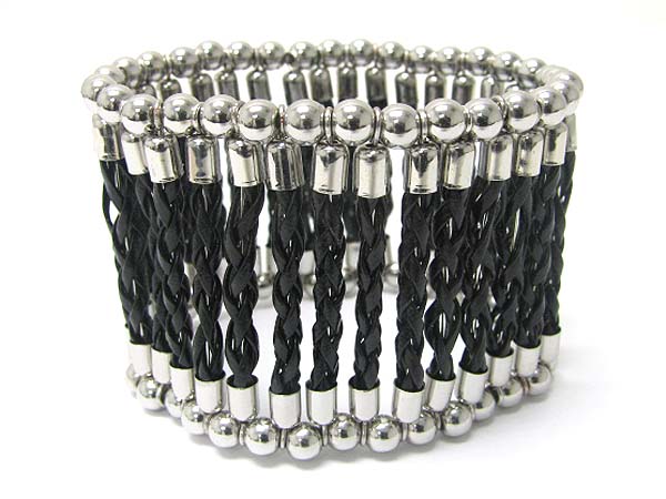 WHOLESALE METAL EDGE BRAIDED CORD LINK WIDE STRETCH BRACELET 356898