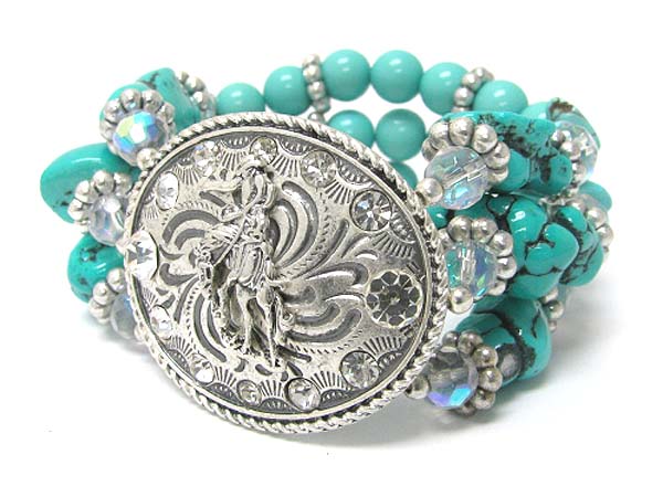 WHOLESALE CRYSTAL STUD COW GIRL THEME BUCKLE NATURAL STONE STRETCH BRACELET 356905