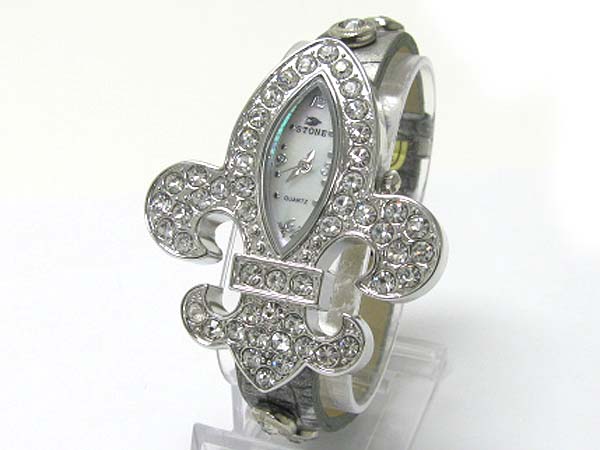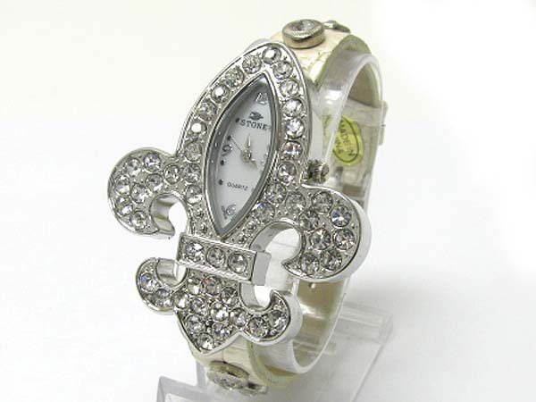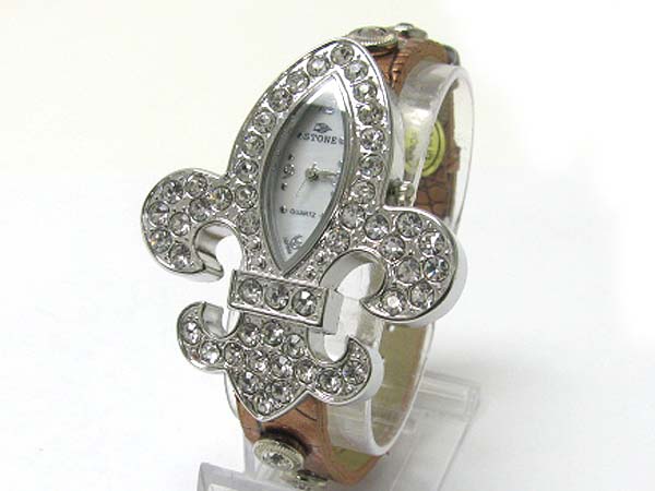 WHOLESALE CRYSTAL STUD FLEUR DE LIS LEATHER BAND WATCH 356911