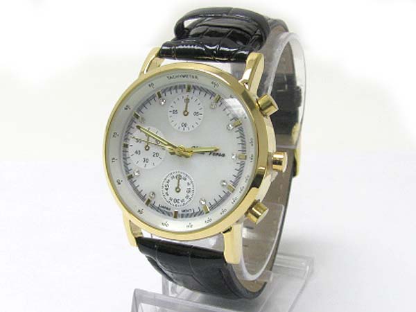 WHOLESALE CRYSTAL DIAL DEEP FACE DESIGNER STYLE LEATHER BAND WATCH 356922