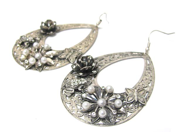 WHOLESALE METAL ART OVAL DISK BUTTERFLY AND FLOWER EARRING 356957