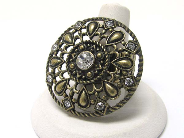 WHOLESALE CRYSTAL STUD BURNISH TEXTURED METAL ROUND STRETCH RING 356966