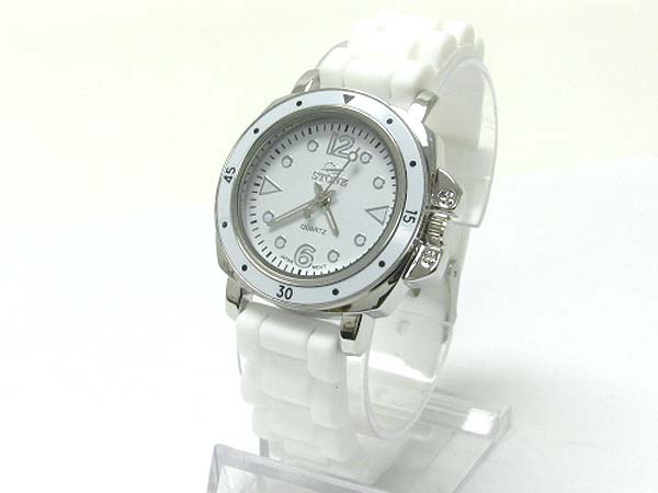 WHOLESALE COLORED ROUND FACE FASHION RUBBER BAND WATCH 357230
