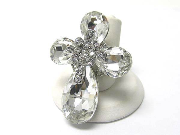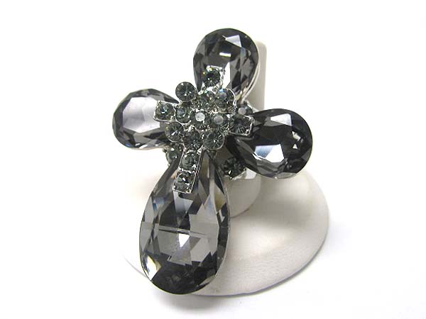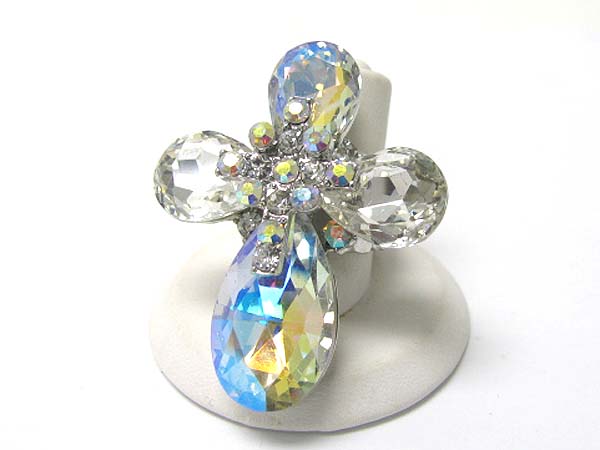 WHOLESALE CRYSTAL TEAR DROP CROSS STRETCH RING 357378