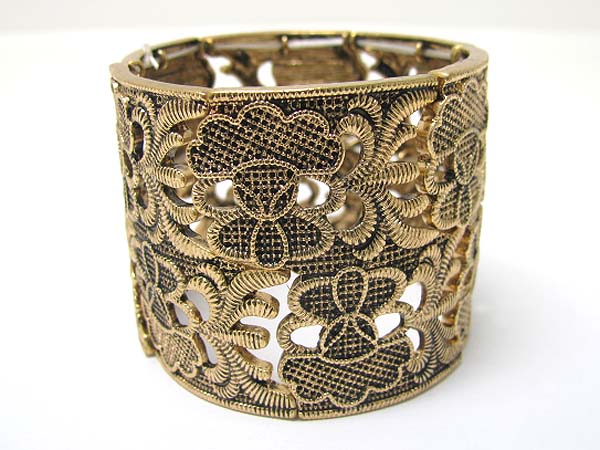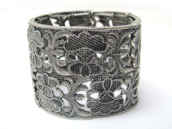 WHOLESALE METAL MESH FLOWER PATTERN WIDE STRETCH BRACELET 357418