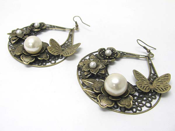 WHOLESALE BURNISH METAL TEXTURED BUTTERFLY AND FLOWER DECO EARRING 357446
