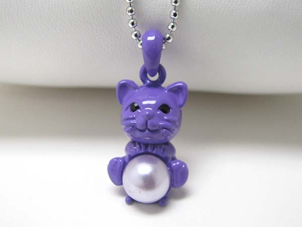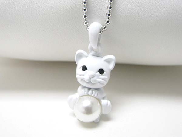 WHOLESALE MADE IN KOREA WHITEGOLD PLATING EPOXY AND CRYSTAL STUD CAT PENDANT NECKLACE 357993