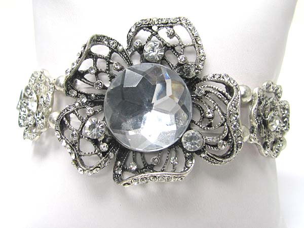 Crystal deco filigree metal flower link stretch bracelet