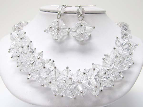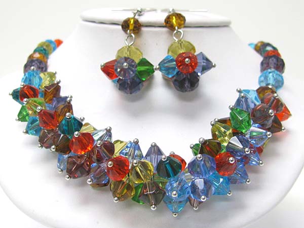 Fact glass stone claster link necklace earring set