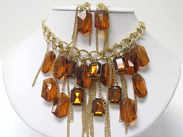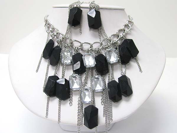 Facet acryl stone and tassel drop necklace earring set