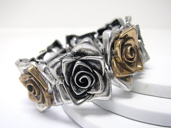 Burnish metal flower link stretch bracelet