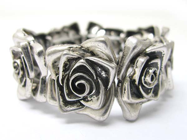 WHOLESALE BURNISH METAL FLOWER LINK STRETCH BRACELET 358312