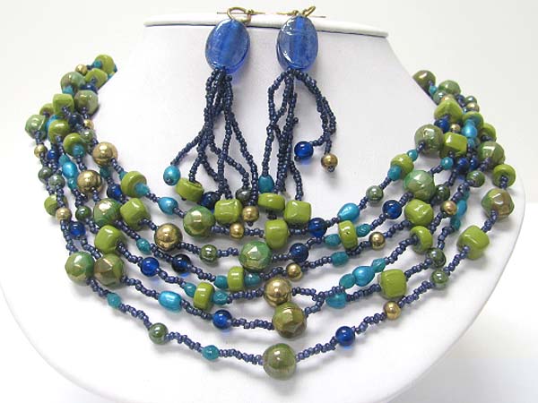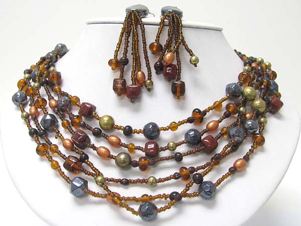WHOLESALE MULT LAYER MIXED GLASS AND SEED BEADS NECKLACE EARRING SET 358340