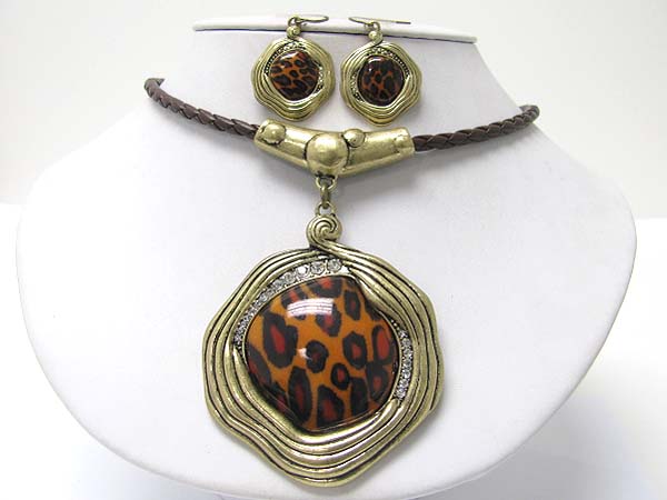 WHOLESALE CRYSTAL DECO LARGE ZEBRA STONE PENDANT AND BRAIDED CORS NECKLACE EARRING SET 358370
