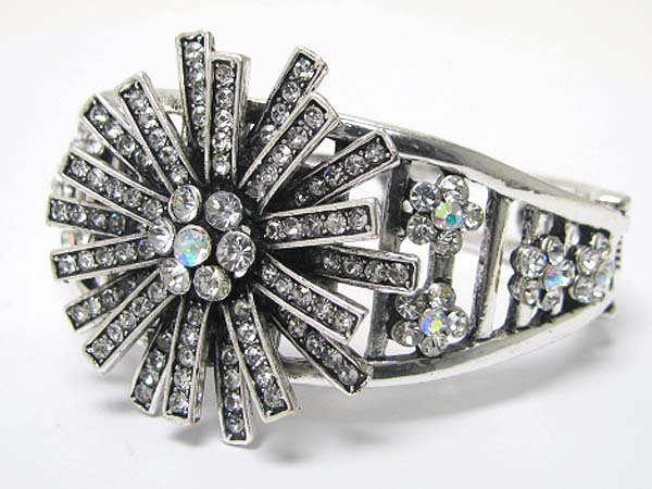 WHOLESALE CRYSTAL STUD METAL FLOWER DECO HINGE BANGLE 358435