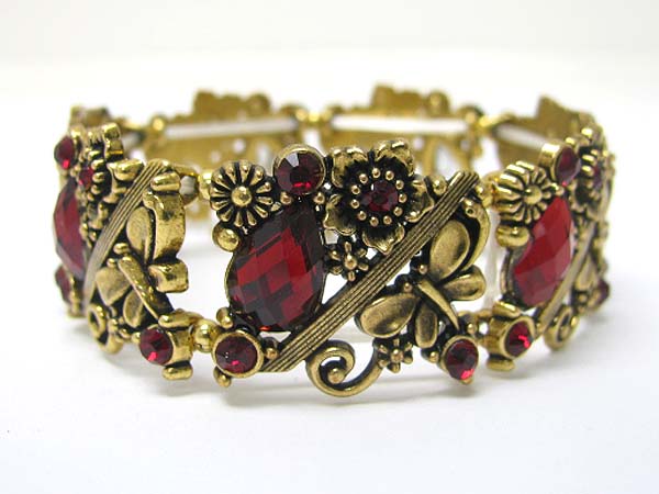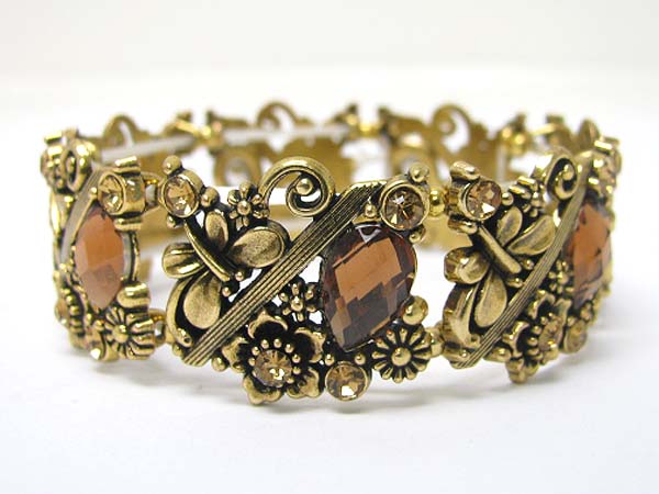 Crystal and acryl stone deco metal stretch bracelet