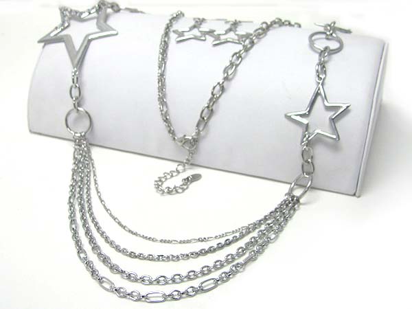 WHOLESALE CRYSTAL STUD METAL STAR AND MULTI CHAIN LINK NECKLACE EARRING SET 358501