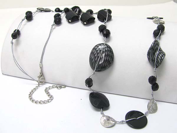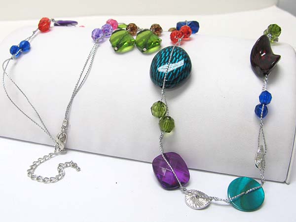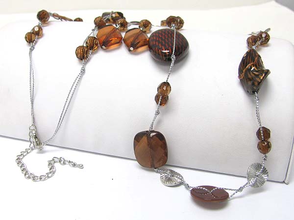 WHOLESALE CEMAMIC STOEN AND GLASS BEADS LINK LONG CHAIN NECKALCE EARRING SET 358673