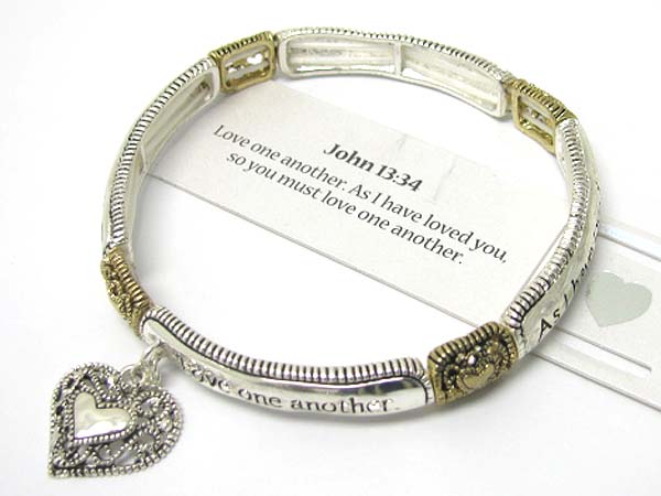 WHOLESALE HEART CHARM DANGLE INSPIRATION MESSAGE STRETCH BRACELET 358701