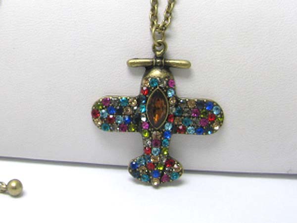 WHOLESALE CRYSTAL AIRPLAIN PENDANT LONG NECKLACE 358711